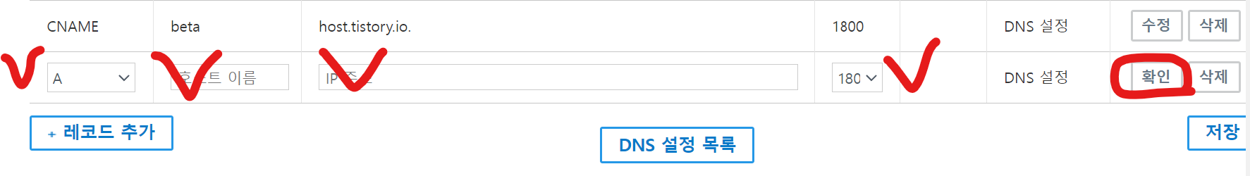 IP주소에는 host.tistory.io. 를 그대로 복사 붙여넣기